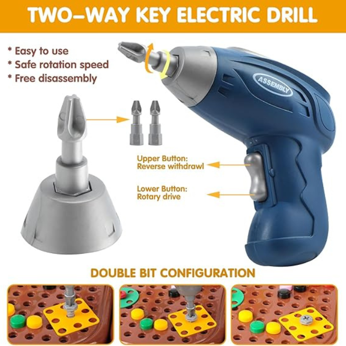 Introduzca a su hijo al mundo de la ingeniería y la construcción con el juego de herramientas de taladro eléctrico para niños. 🔨